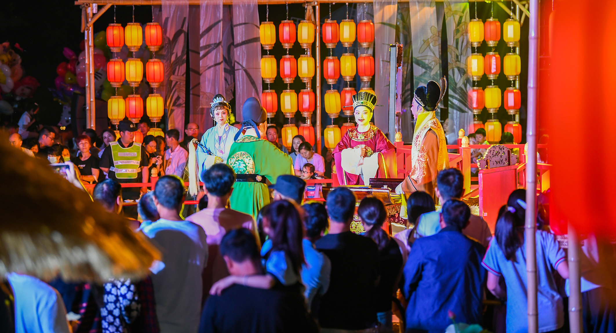 夜幕降临,苕溪锦带夜色璀璨,柔和美丽。国风汉服达人爱好者组成的巡游方阵是苕溪两岸一道靓丽的风景线,更彰显了吴越文化在新时代的传播活力。苕溪公园内,一场以“钱王夜宴”和“吴越味道”为主题的美食市集给广大市民带来了美食盛宴。此外,公园内一个高达3.5米的耕植图造景装置吸引了不少市民前来打开拍照,感受临安千百年的耕织文化。