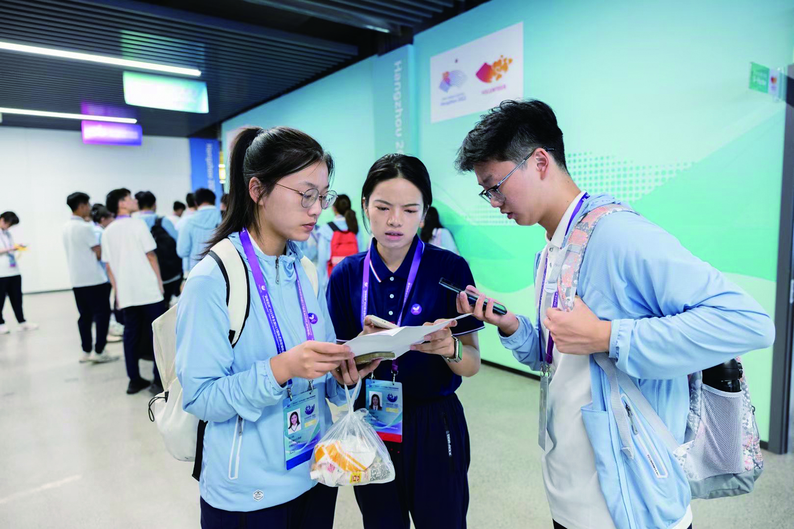 市民胡佳丽特意带着家人看家门口的比赛,提前感受亚运氛围。她说,检票、安检、入座……每个环节都有志愿者热情引导。她点赞说:“比赛精彩,服务到位,很过瘾!”