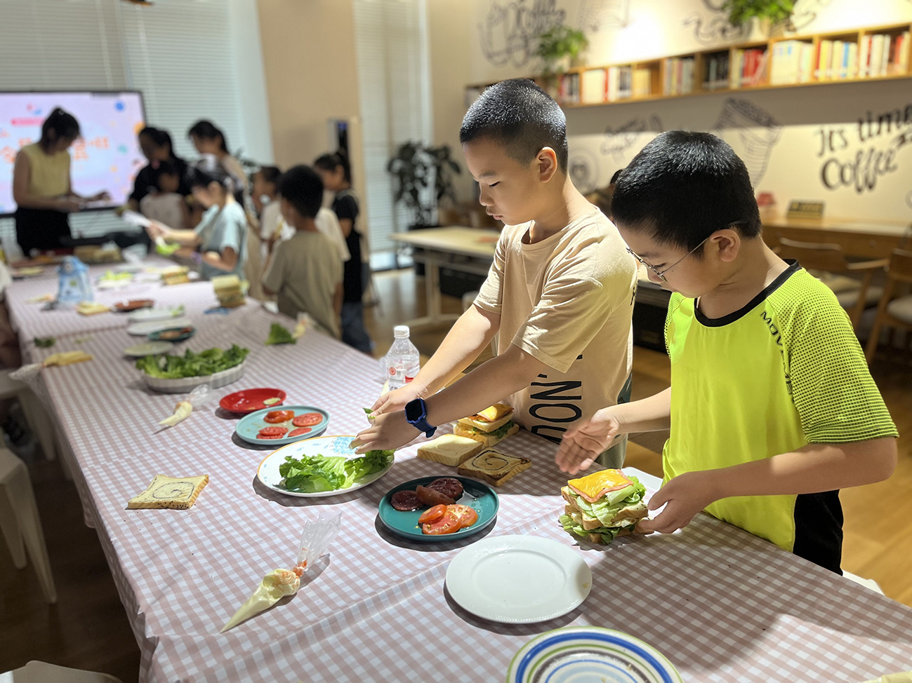 “先铺一张面包,再放上生菜,然后加一片培根……”11日上午9点,在区党群服务中心,志愿者老师正在给孩子们上美食制作课。老师耐心带孩子们认识各种材料,并示范讲解制作三明治的步骤。