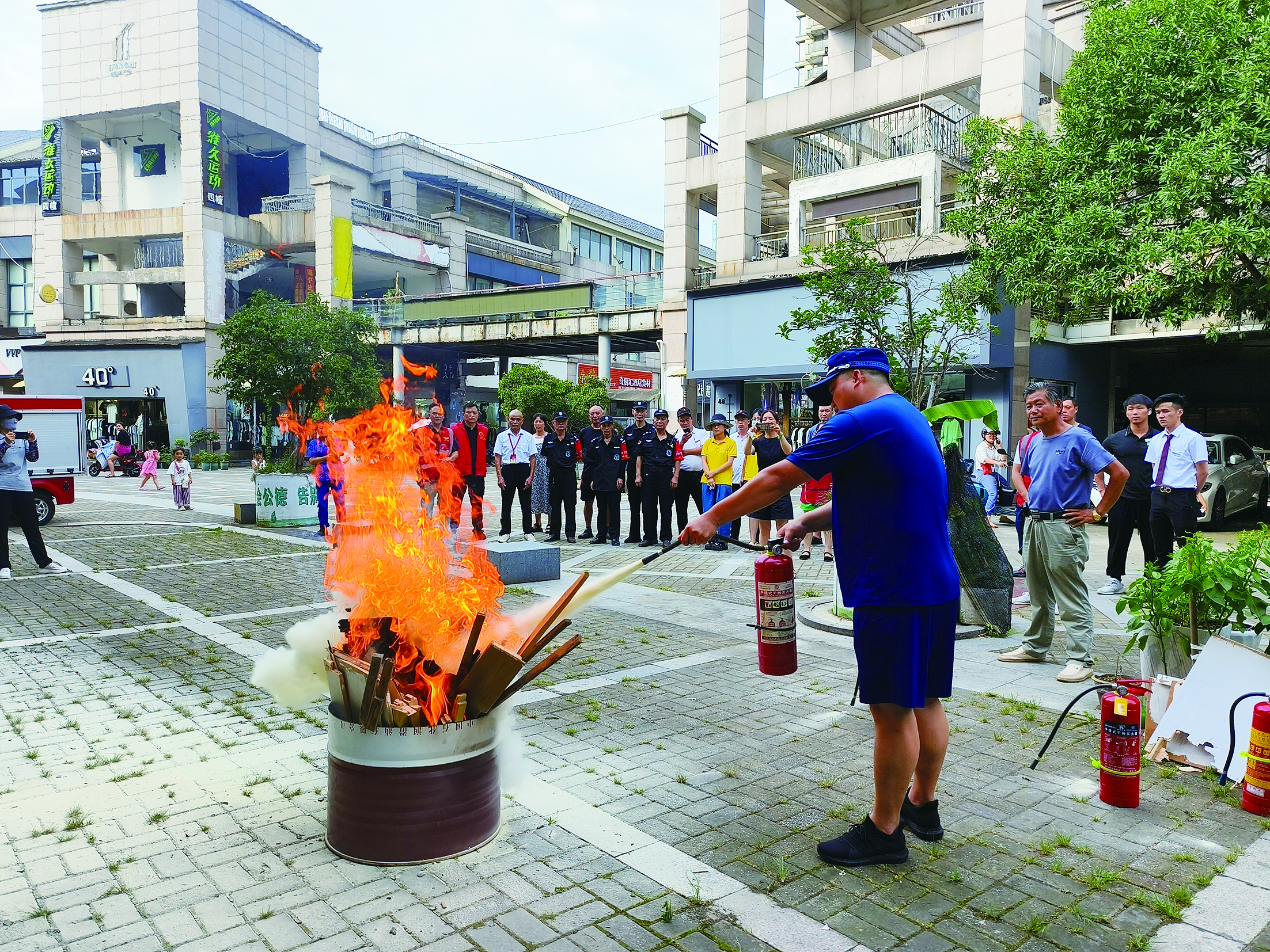 日前,锦城街道文昌阁社区党群服务中心联合万马物业在新天地商业广场开展了“平安护航亚运、筑牢安全‘防火墙’”的消防应急逃生演练。