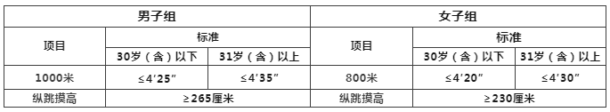 体能测试项目和标准:
