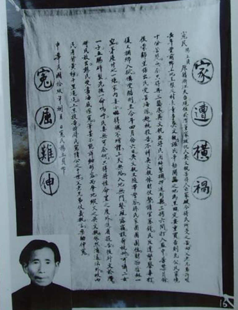 今年86岁的郑官富几年前举家从叶坞里搬到了镇上,他是还能回忆起杨立贝为数不多的老人之一。他记得小时候见过杨立贝,那时候的杨立贝留着民国发型,长发披散开来显得有些另类,“他家就住在水牛坞,他很少和人接触。”在郑官富的眼中,杨立贝是个少言寡语的人,但是他身上有着一股倔犟的脾气,无论是和吴文执的纠纷甚至冲突,还是三上法院告状,都凸显了他不甘于被欺压的本性,“那时他背着一捆草鞋,带着干粮,带着状纸,去南京告状。”去南京告状路迢迢,杨立贝没有犹豫也没有退缩,就像他从天台逃荒而来一样,他完全投入到“一个人的战斗”中。