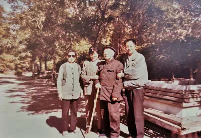 晚年骆耕漠(右二)和夫人唐翠英(左一)