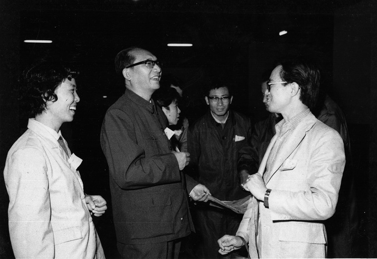 1981年,在《波士顿博物馆美国名画原作展》布展现场,沈之瑜馆长会见波士敦博物馆吴同研究员。