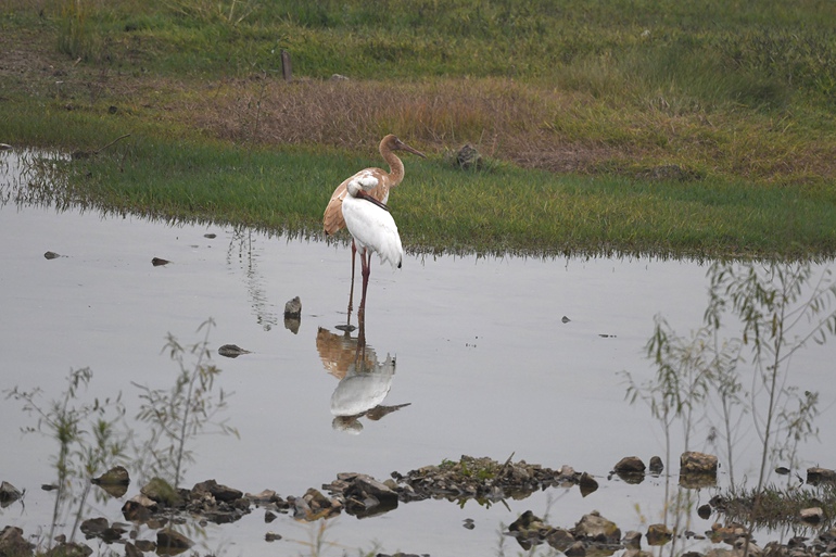 然而,赵金富从去年到此刻,最想观察到的鸟,依然不见踪影。它就是早几年多次活动在青山湖水域的国家一级保护动物白鹤。“就在水上森林那片芦苇荡里,去年那边扩建旅游设施,湿地和芦苇都消失了,那以后白鹤再也没有观察到。”赵金富说,脚下这片人工绿地,早先是一片滩涂和湿地,“那时能从远处观察到更多的鸟。”