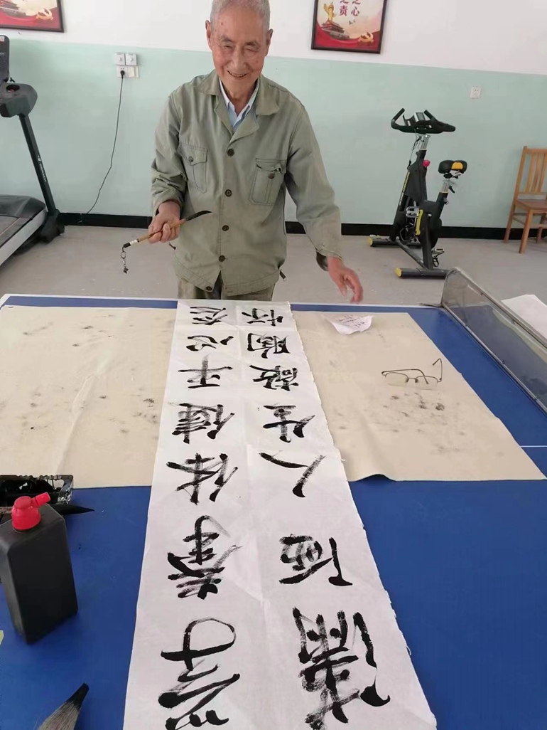 谈谈旅游,说说诗文,对于这两个年过九旬的哥俩来说,他们最挂念的事,则是祝家庄文化礼堂的“寿星健身队”活动什么时候能恢复。因为9月份开始打山核桃,家家户户都在忙着山核桃采收,以往每周日上午安排的活动已经快一个月没有举办了,但是在场的81岁王维新给他们吃了一颗定心丸:这个星期天可以恢复了。
