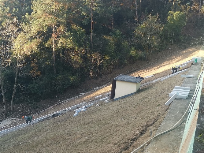“该坝体由于建设时间久远,出现渗水的情况,我们通过打井机具,在坝体的渗漏部位造井,帷幕灌浆,加压夯实,从而形成一道防渗墙,起到截断渗流通道的作用。”项目相关负责人告诉记者,除了套井回填作业,还对大坝的防浪墙和背水坡进行修缮和美化。截至目前完成总进度40%,计划2023年2月底完成整个工期。