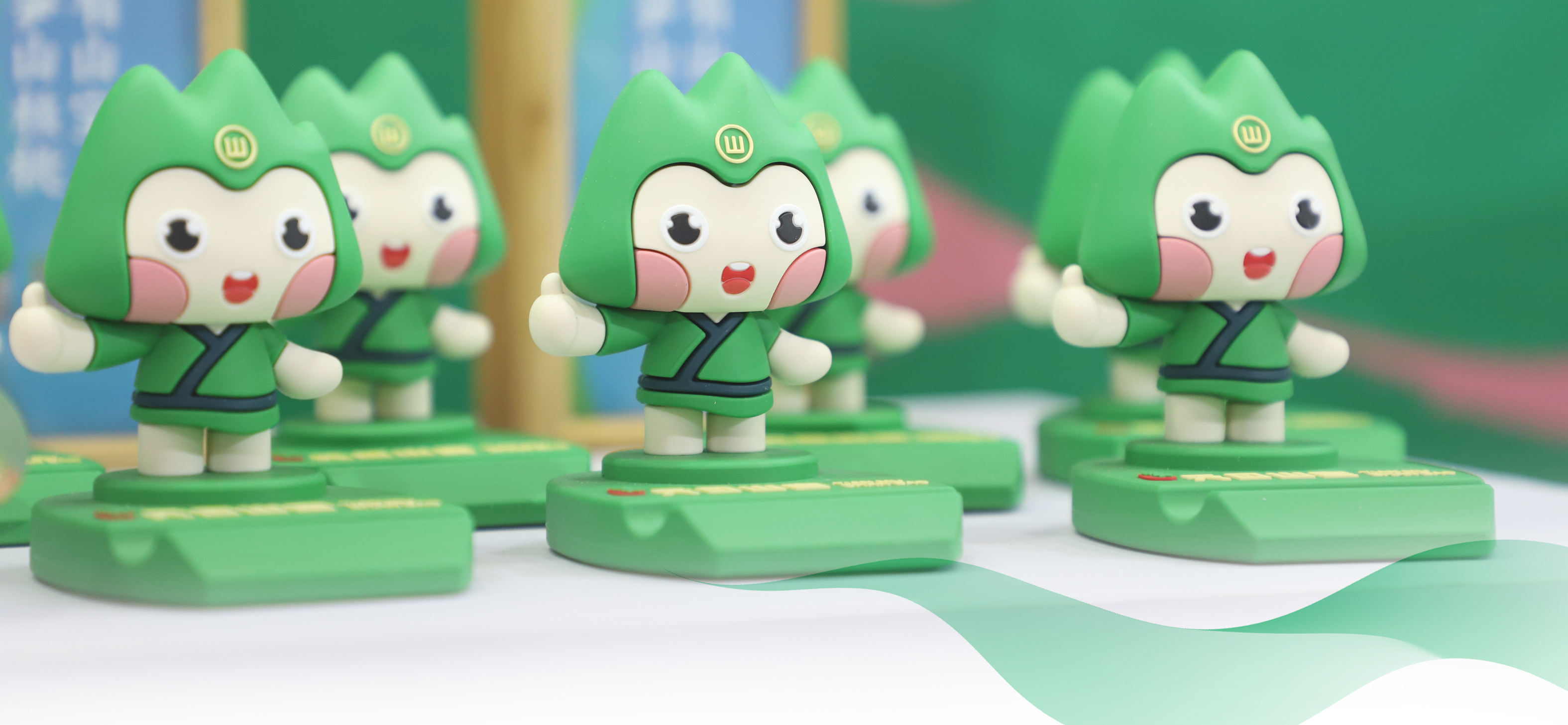 天目山绵延伫立,是临安最著名的IP之一,几千年来,优质的环境和农人匠心耕耘,孕育出了许多珍馐美馔。头顶延绵青山,唱响绿色健康,“天目山宝”设计灵感来源于天目山,可爱的“小绿人”顶着一个“山”字形的大脑袋,睁着一双亮晶晶的大眼睛,一手点赞,一手提篮,篮中装满着临安特产,小小的山宝,活泼灵动,眼眸纯真,很具亲和力,充分体现临安优质农产品特色。